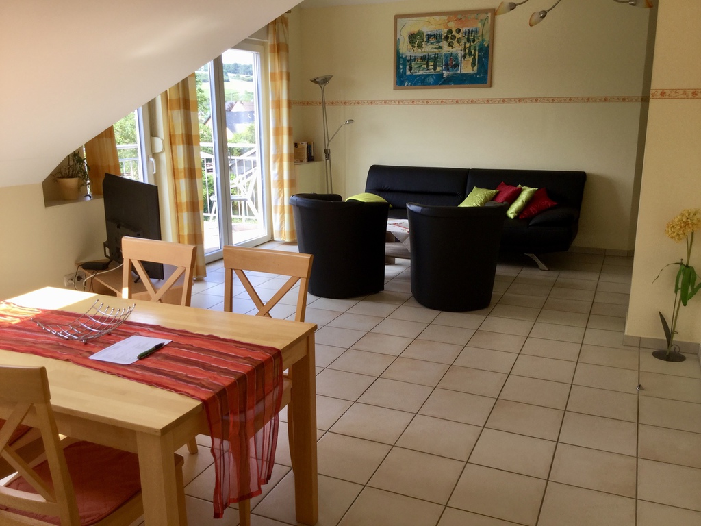 Unsere Ferienwohnung "Elbling" ist 70qm groß und verfügt über zwei Schlafzimmer (Doppelbett bzw. zwei Einzelbetten), einem großen Wohn-/ Esszimmer, einer Küche, einem Bad sowie einem Balkon.